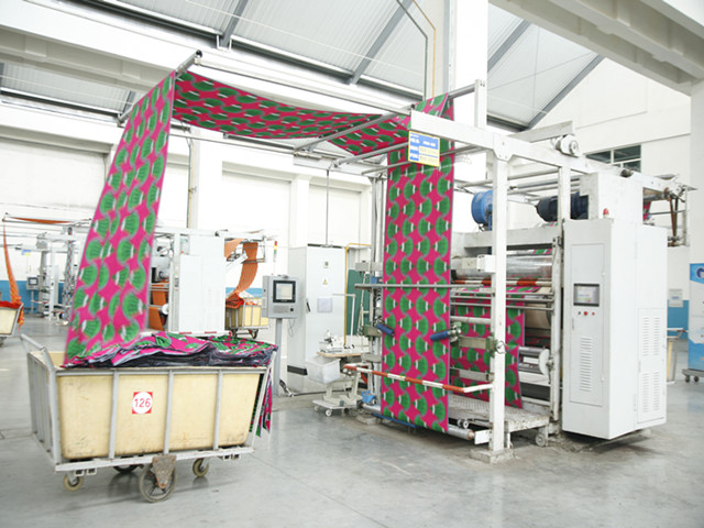 華紡股份有限公司花布公司是公司印染主導(dǎo)產(chǎn)業(yè)板塊的重要組成部分,集印花面料的設(shè)計(jì)、印制、后整及銷(xiāo)售于一體,擁有進(jìn)口齊瑪20套色圓網(wǎng)印花機(jī),由高效配套的水洗機(jī)、退漿機(jī)、雙面印花機(jī)、絲光機(jī)、蒸化機(jī)、拉幅機(jī)等裝備組成13條功能先進(jìn)的印花生產(chǎn)線,輔以2條先進(jìn)的自動(dòng)調(diào)漿系統(tǒng);采用CAD滑行設(shè)計(jì)處理系統(tǒng)和先進(jìn)的蘭光制網(wǎng)機(jī)、噴蠟制網(wǎng)機(jī)等,可根據(jù)客戶及市場(chǎng)需求設(shè)計(jì)花型,并自主研發(fā)引領(lǐng)時(shí)尚潮流的新花型。年產(chǎn)能力12000萬(wàn)米,產(chǎn)品綜合出口率達(dá)80%以上,其中純棉真蠟印花布、純棉仿蠟印花布等100%外銷(xiāo)出口?;ú脊旧a(chǎn)工藝先進(jìn)、產(chǎn)品質(zhì)量穩(wěn)定,技術(shù)含量高、市場(chǎng)份額大,長(zhǎng)期暢銷(xiāo)非洲等數(shù)十個(gè)國(guó)家和地區(qū),其產(chǎn)品在非洲市場(chǎng)占有重要位置。